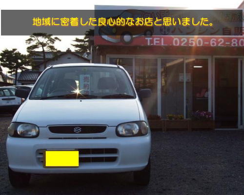 加盟団体 | ・新下越車検センター(車検場)、・新潟中古車自動車販売協会(JU新潟加盟店)、・(財)日本自動車 査定協会加盟店、・自動車公正取引協議会加盟店、・(財)新潟県自動車整備振興会員、・(財)自動車リサイクル促進センター 使用済自動車引取業者 |