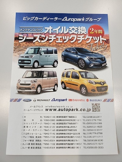 2年間のエンジンオイルの交換、オイルエレメント、ワイパーゴムの交換に加え、更に夏・冬のシーズン前チェック点検も含めたメンテナンスパックを特価でご用意しております。